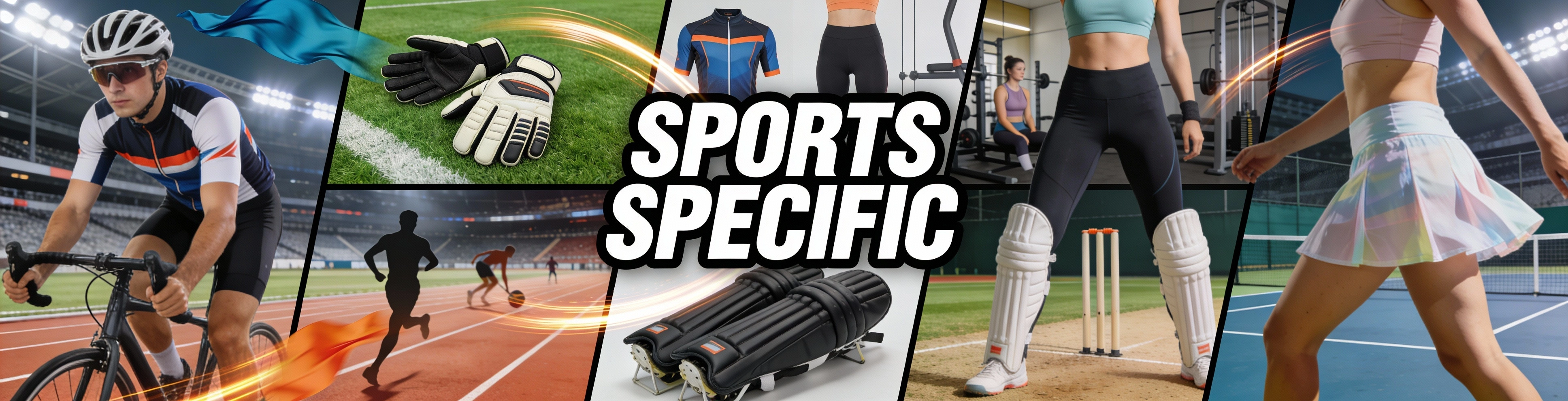 Sports specific in sports textile Sports specific is the sports specific fabrics and garments that are specifically engineered to suit the specific performance requirements of a particular sport. In contrast to other general activewear, sports specific wear has been formulated through movement patterns, intensity levels, exposure to climatic conditions and protection of sports specific needs.